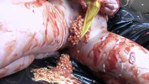 Belle O'Hara has her pantyhose filled with spaghetti, mac n cheese, beans, cornflakes with mayo and topped off with sweet corn with crushed savoury pies somewhere in the mix; plus, she turns her boobs nutty and her cute ass green! Starring: | ||||